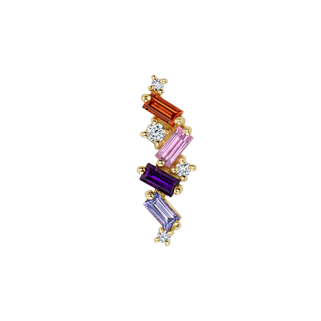 Pictured in Yellow Gold with Orange Sapphire, Pink Sapphire, Amethyst, & Tanzanite baguettes and Diamond rounds,