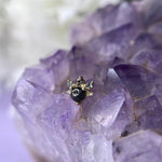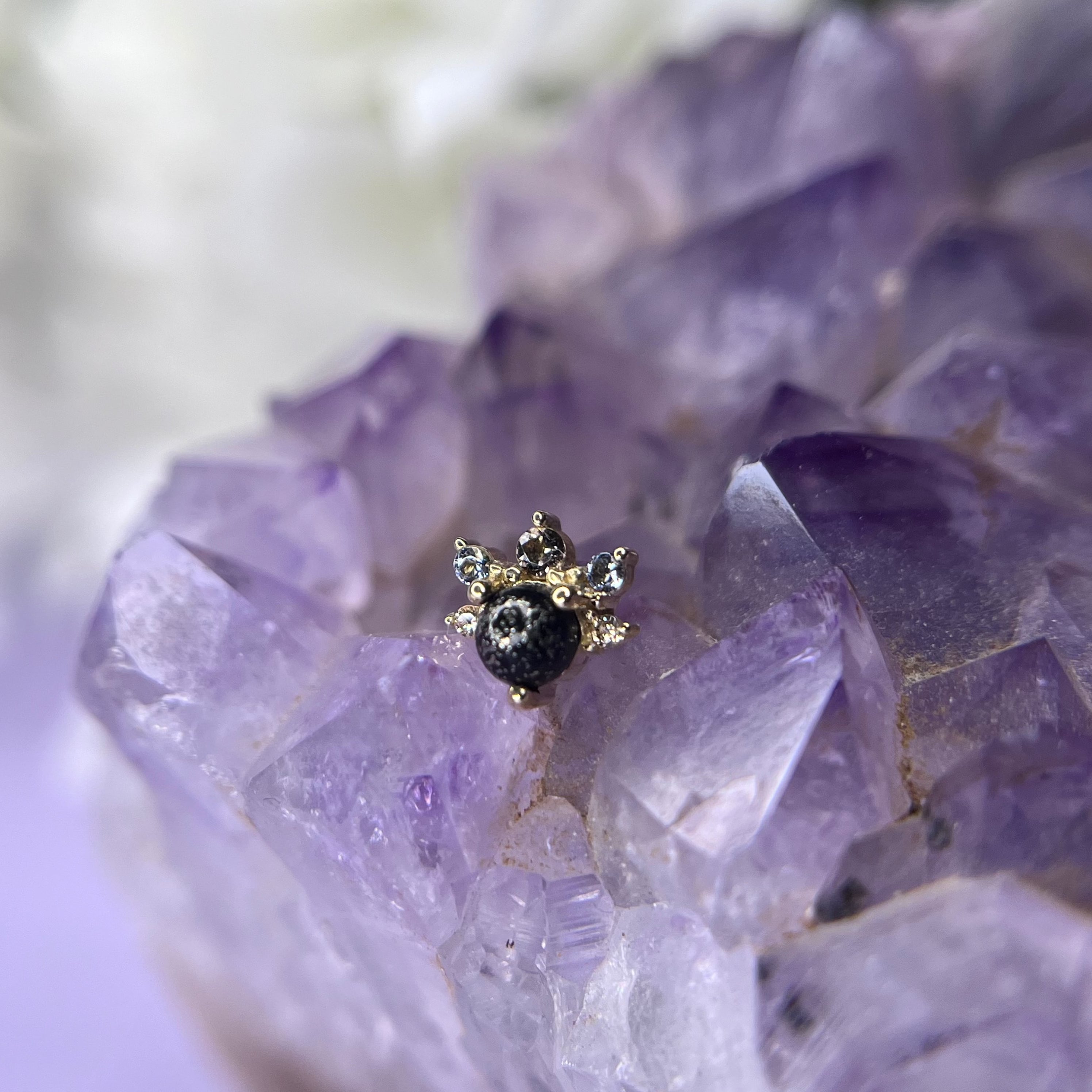 Option 2: 14k yellow gold, 16g/18g internally threaded, pyrite cabochon center with champagne cz, grey cz and smokey quartz.