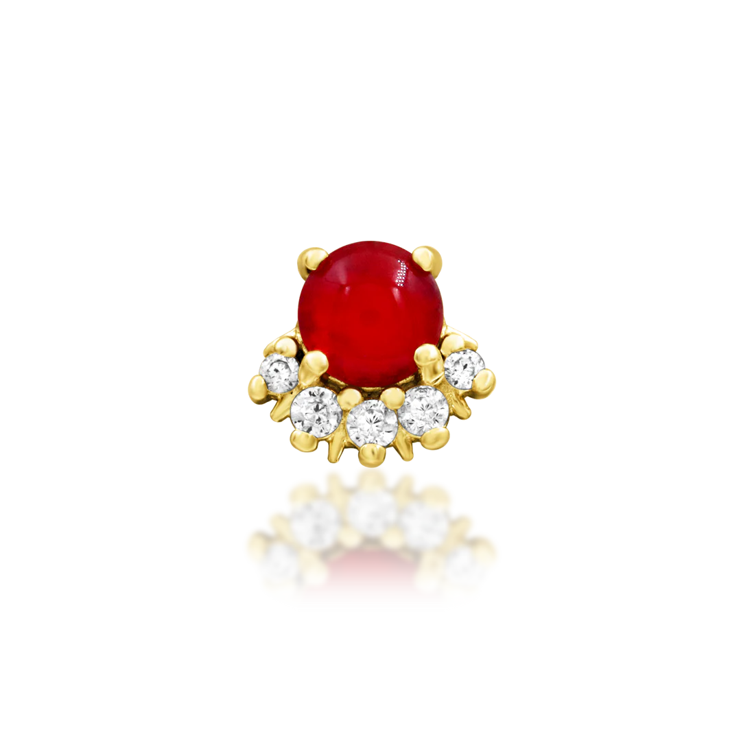 Rolina, like a muse, whispers secrets of elegance and inspires a sense of wonder. The deep red Carnelian, set in a delicate halo of zirconia, creates a mesmerizing contrast.