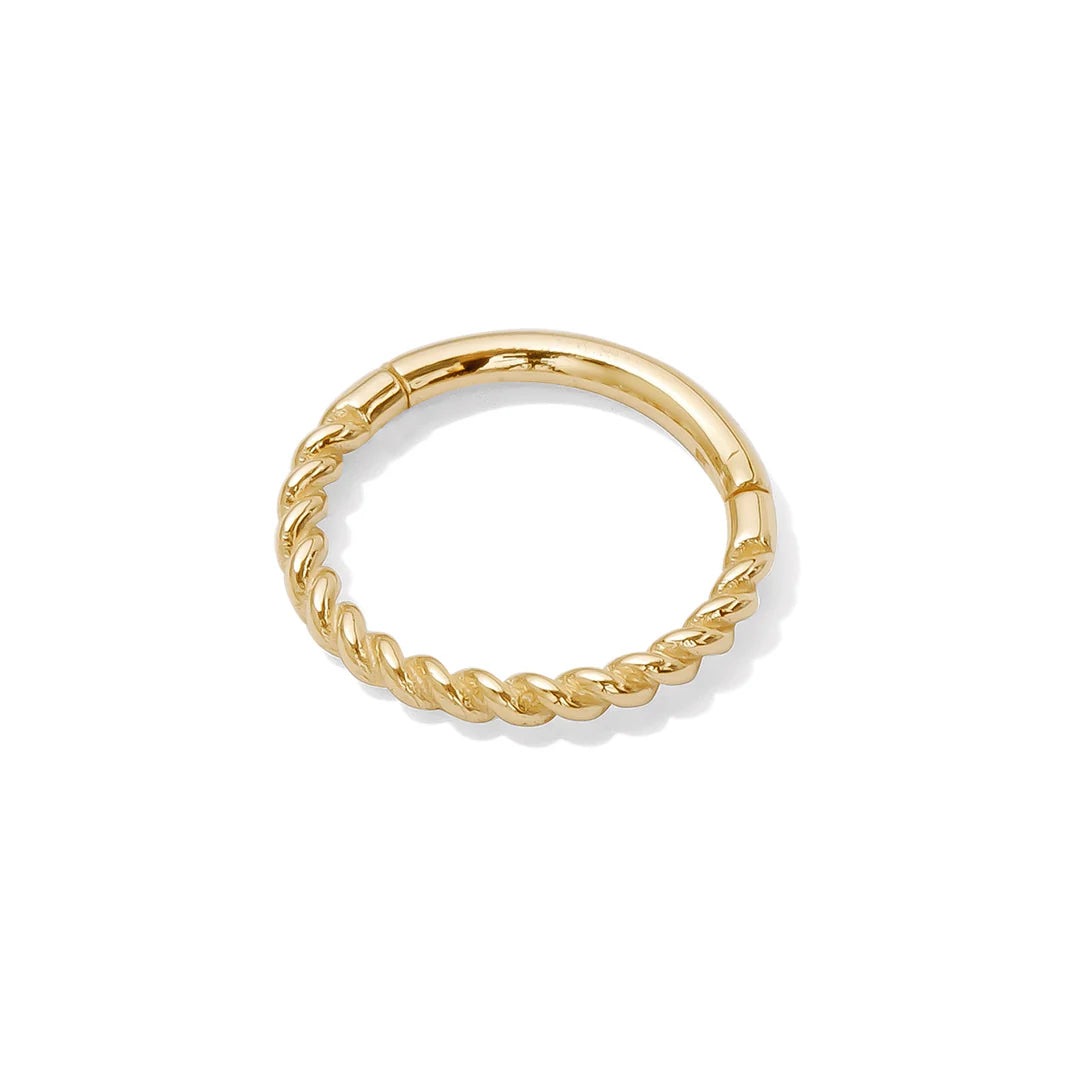 It's time for a luxury update to your jewelry! Enjoy the sleek, luxurious style of our Paris Clicker in 14k Gold. With its braided twisting rope design and elegant organic texture, this gold must-have is sure to add a touch of sophistication and style to your look.