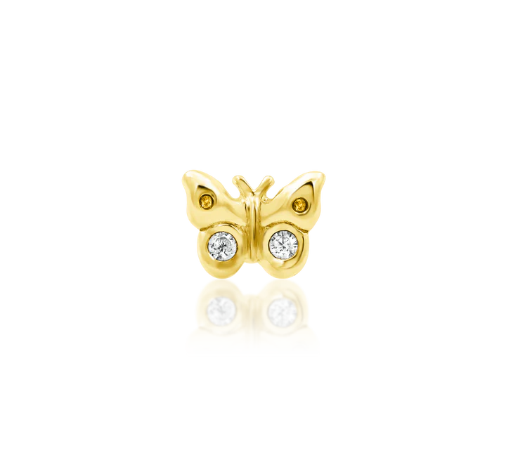 detailed solid gold and white cz luna moth piercing jewelry for threadless post; yellow gold