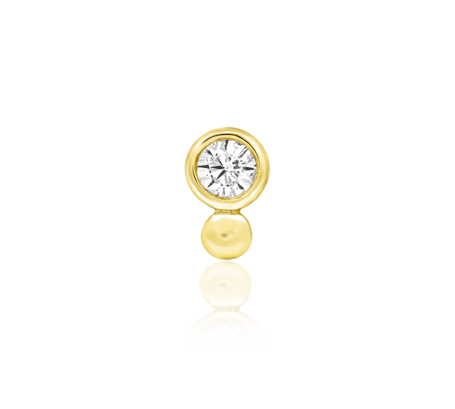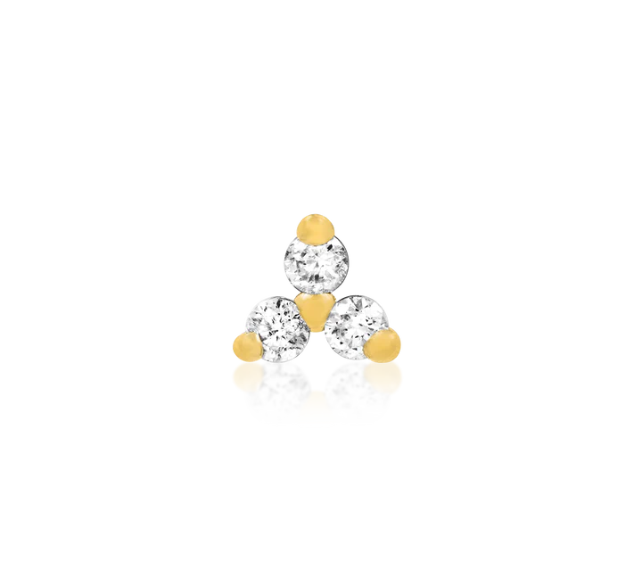 solid three bead gold threadless end for piercing jewelry