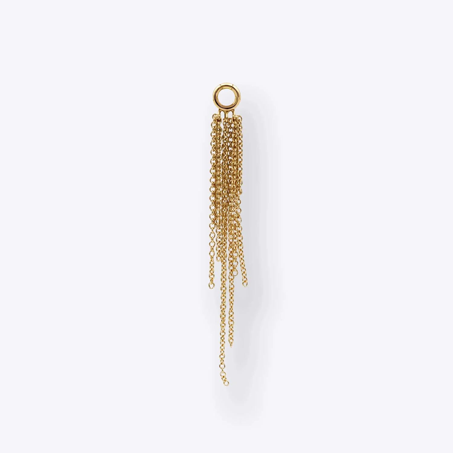 We’re proud to introduce Tidefall, a majestic chain charm crafted from 14K gold, inspired by the spectacle of vast waterfalls and the shimmering sunshine within the cascade. This piece dazzles with its organic asymmetrical layering and seemingly endless fringe that flow with fluid grace, creating volume and drama. Each glimmering link is a testament to the beauty of terrestrial torrents, embodying the grandeur of a life-giving force.