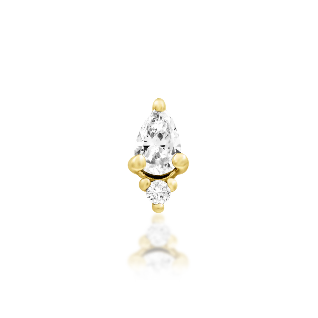 Karma's out to get you, in the best way possible. With a stunning pear shaped CZ paired with a smaller round CZ. Comes in White and Black.