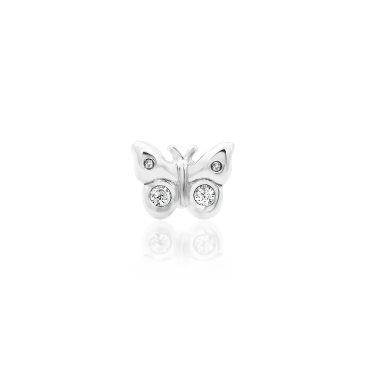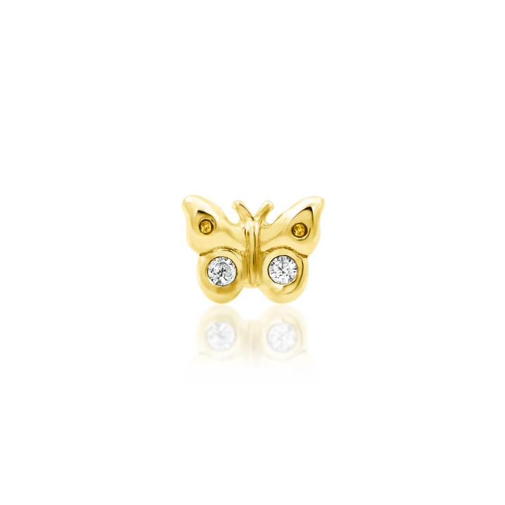 The Mini collection, the mini butterfly is a beautiful 14k 3D sculpted butterfly end with 2 sparkling 0.8mm CZs.   Mini sized at 3.9mm x 3mm, it is perfectly sized for smaller ears and smaller spaces.