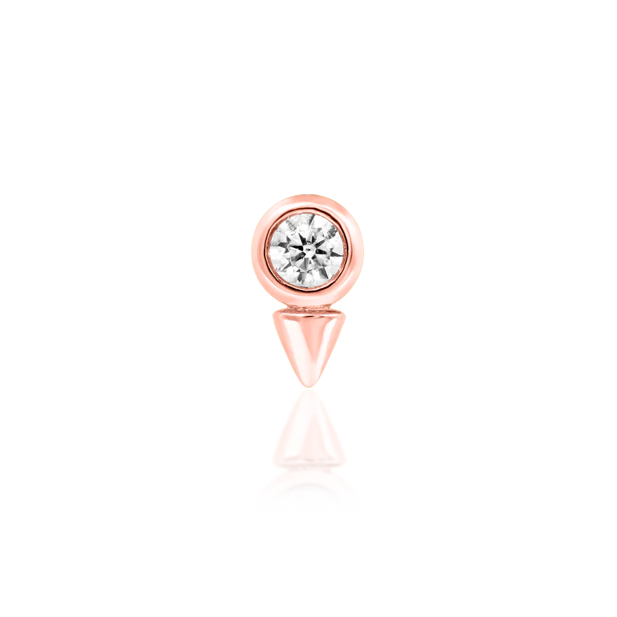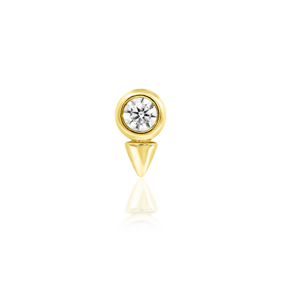 A classic 14k cz bezel paired with a gold 14k high polished spike measuring a total of 2.3mm x 3.9mm.