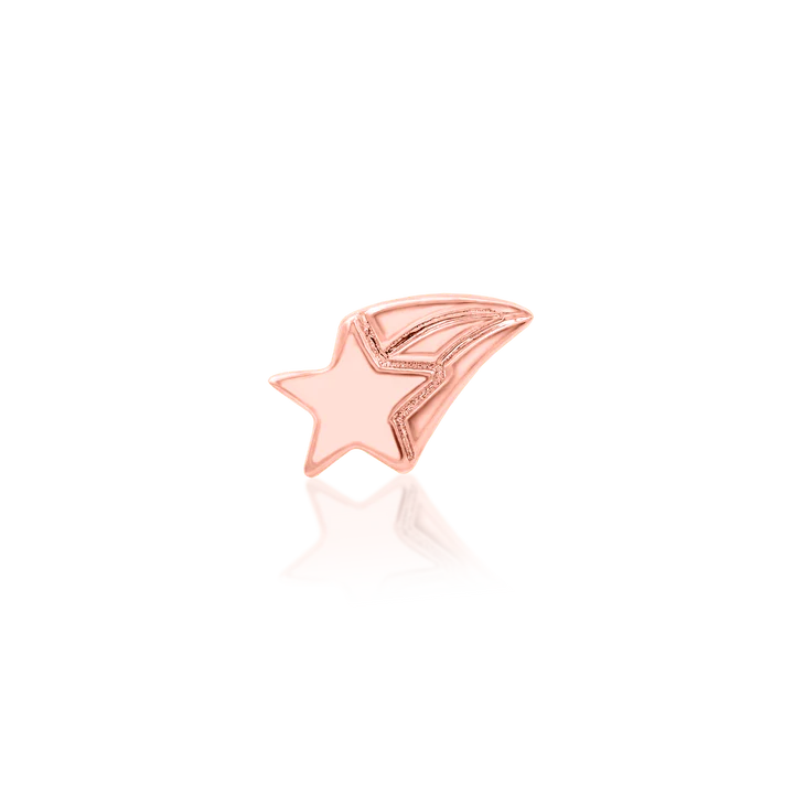 Part of Junipurr's mini collection, Shooting Star is a wish come true!  A perfectly sized, 14k high polished  3.8mm x 6.6mm, the Shooting Star end is perfect for smaller ears and smaller spaces.  It is available in Yellow, Rose and White gold.