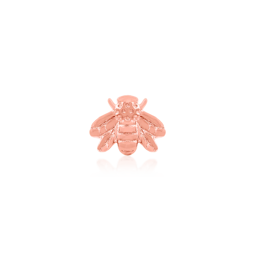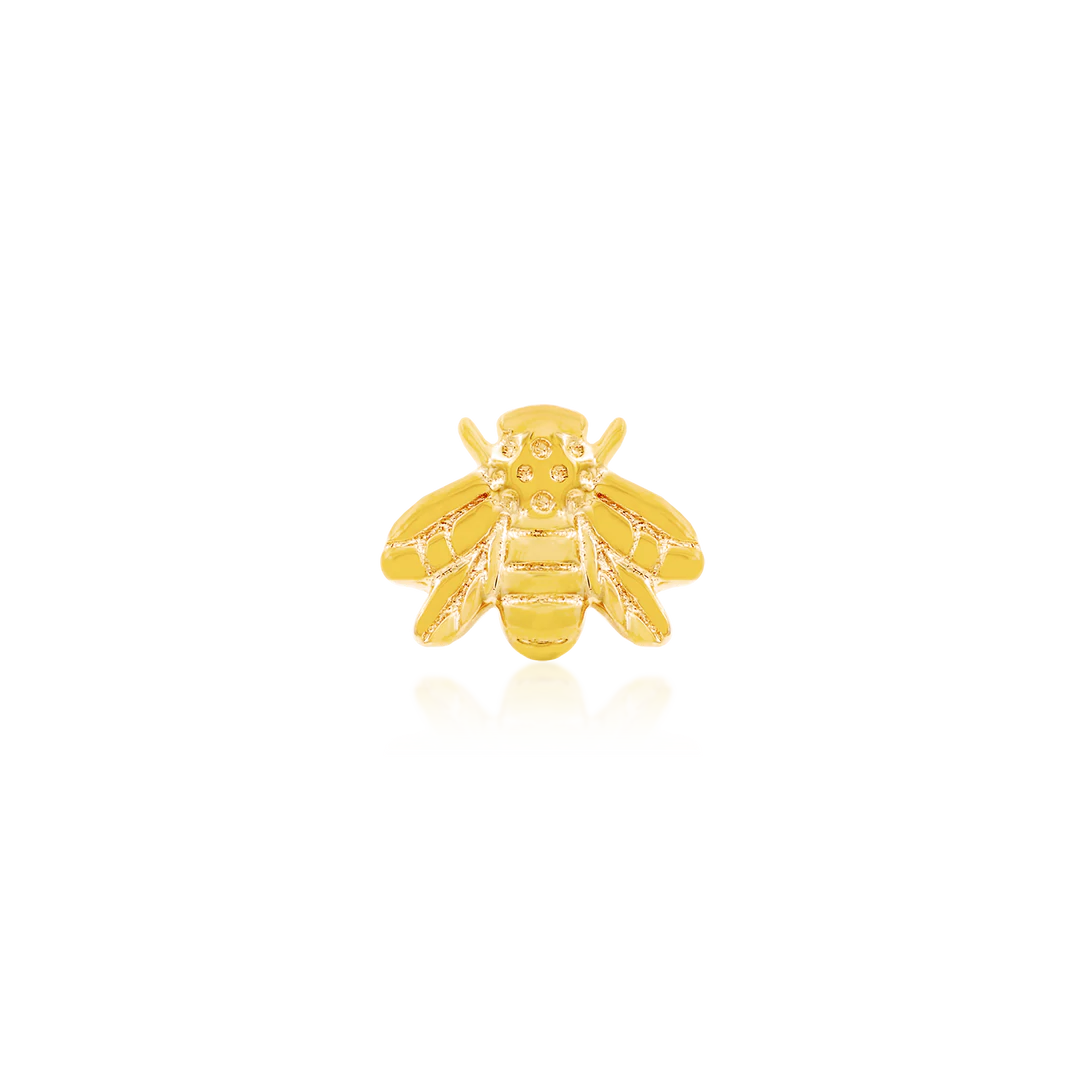 The Gold Bee piece is a favourite in body jewelry, especially ear jewelry projects. They can be worn stacked, paired with rings or other studs. This threadless decorative end is available in 14 karat Yellow Gold, White Gold and Rose Gold options. They measure 6.75mm x 5.20mm.